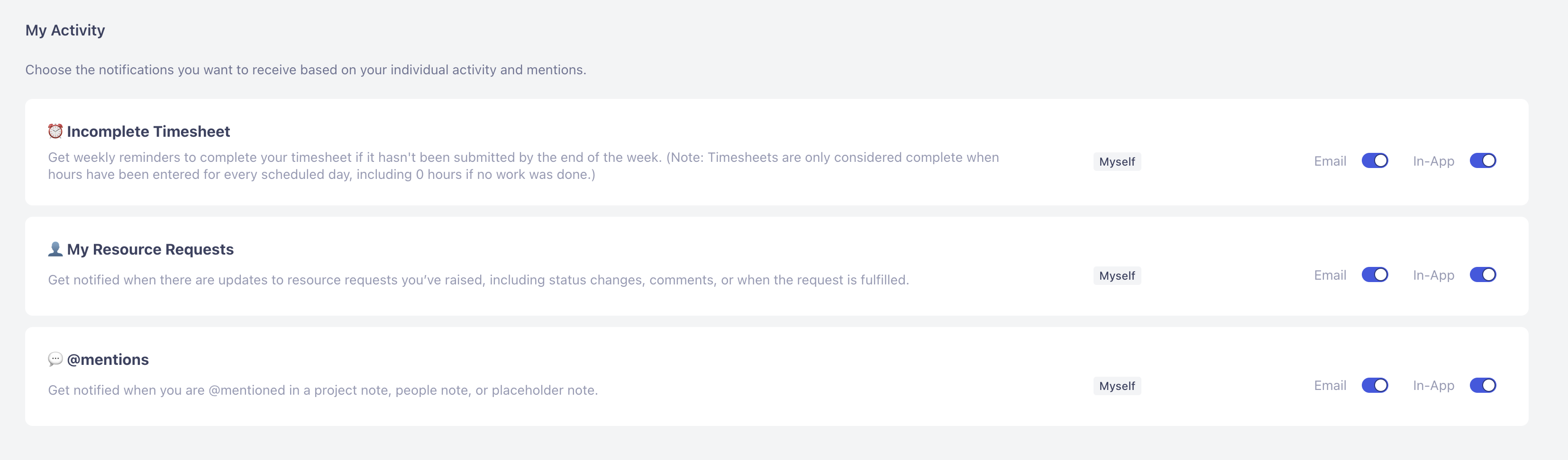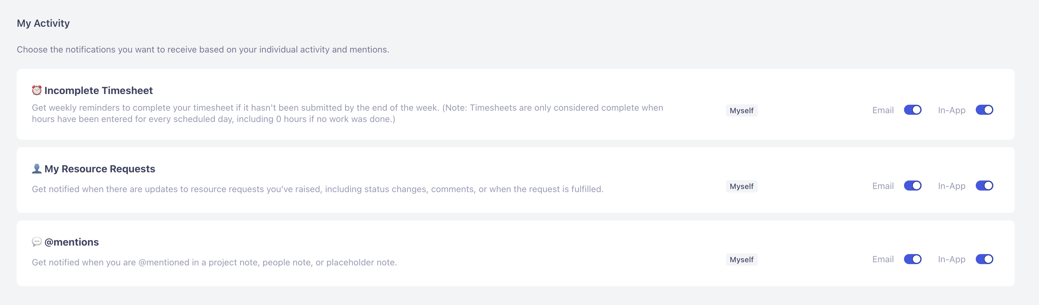 Mention managers and admins in project notes, people notes, or placeholder comments to trigger in-app notifications.